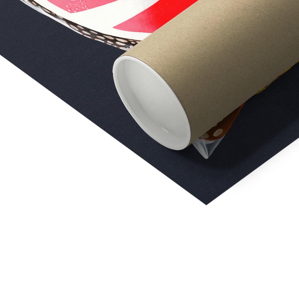Prints larger than A4 are sent rolled in a cardboard tube. Unpack & flatten with care.