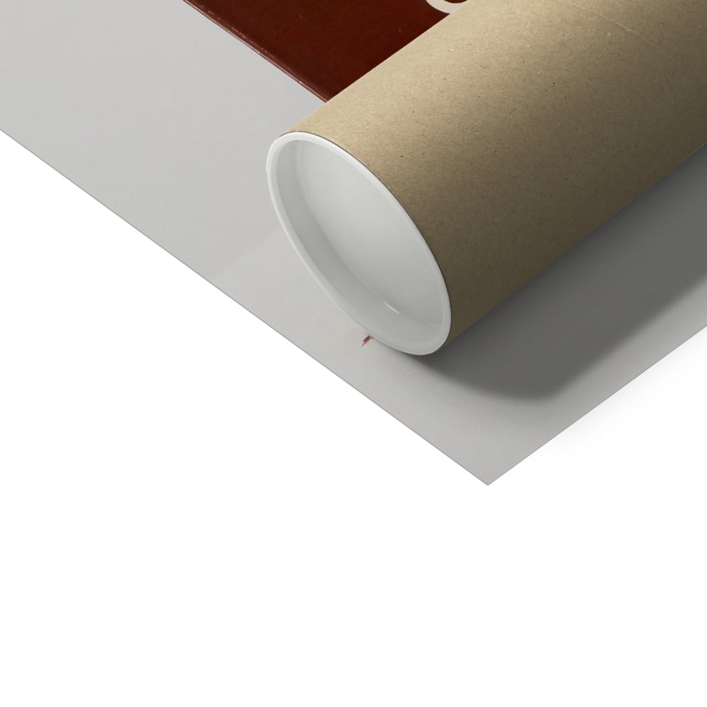 Prints larger than A4 are sent rolled in a cardboard tube. Unpack & flatten with care.